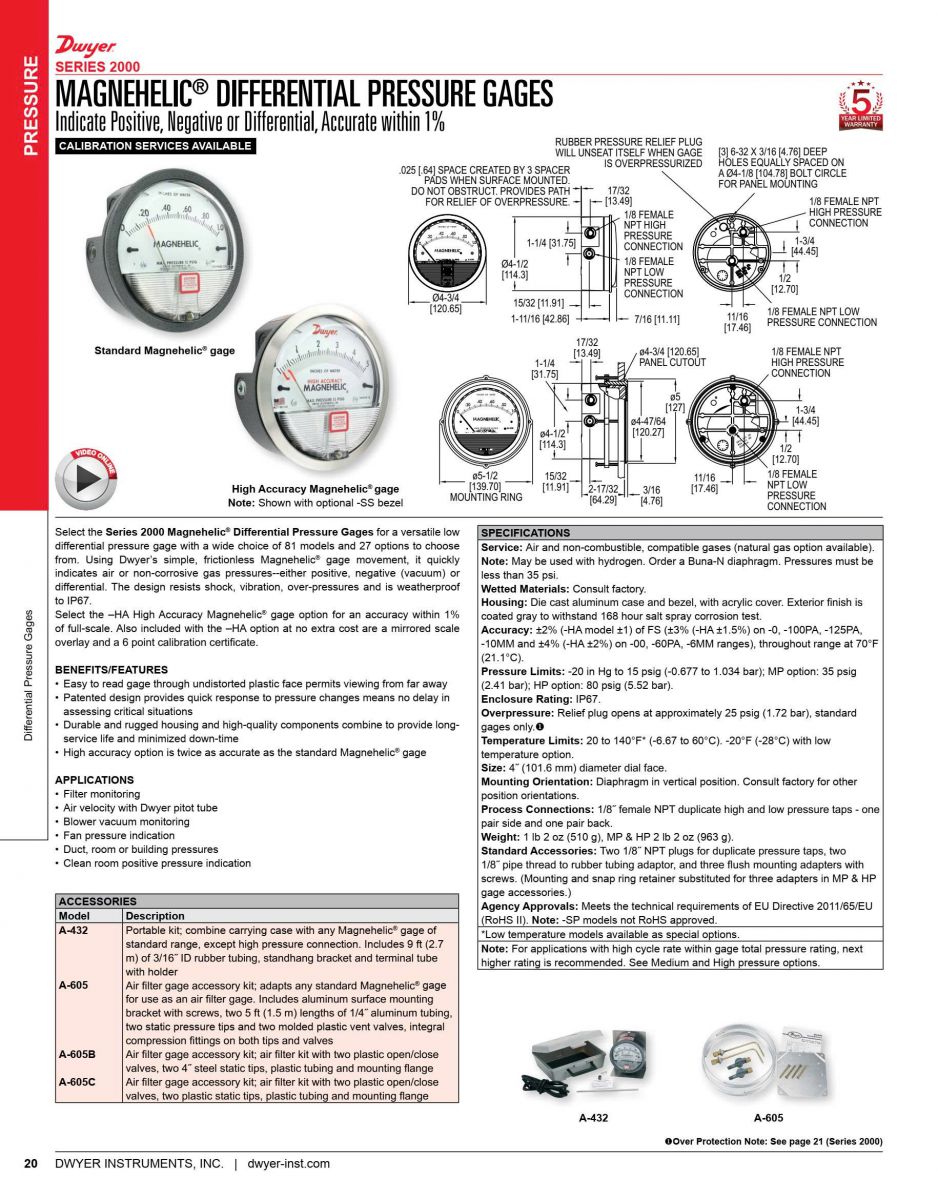 Tóm lại: Dwyer Series 2000 là một thiết bị đo áp suất chênh lệch khí nén cơ học, đáng tin cậy, chính xác và dễ lắp đặt, phục vụ chủ yếu cho mục đích giám sát và kiểm tra bộ lọc trong các hệ thống xử lý không khí.