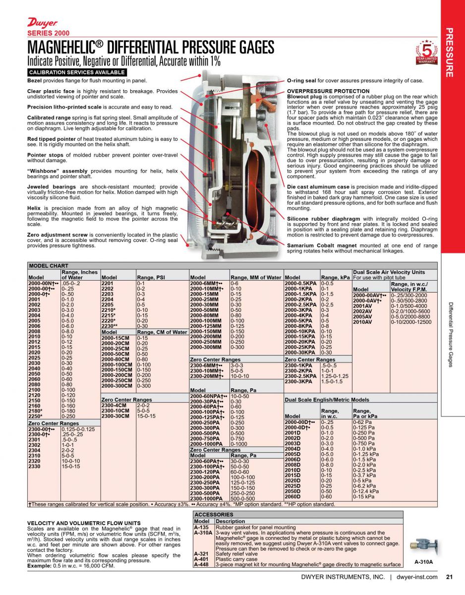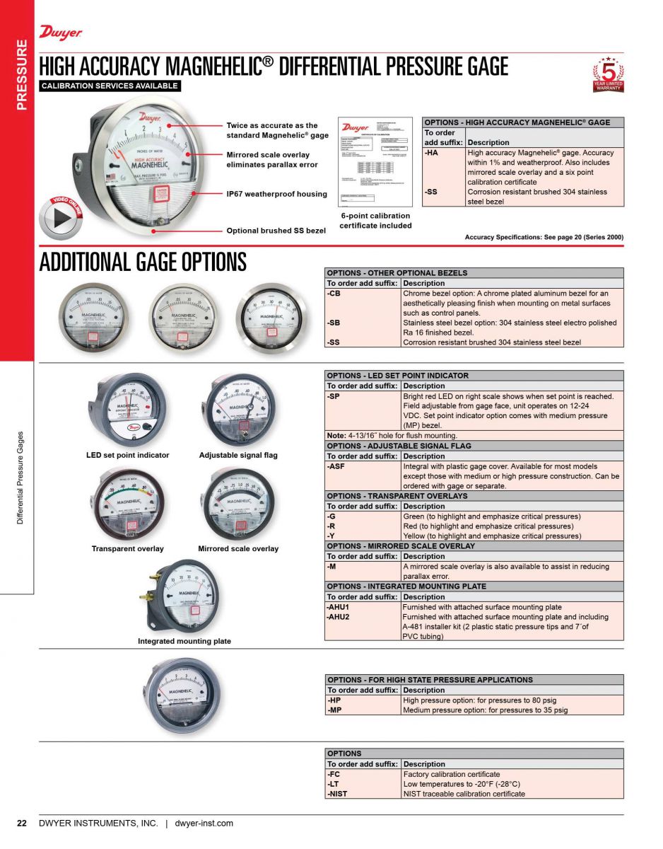 ĐỒNG HỒ ĐO ÁP SUẤT CHÊNH LỆCH DWYER MAGNEHELIC® SERIES 2000