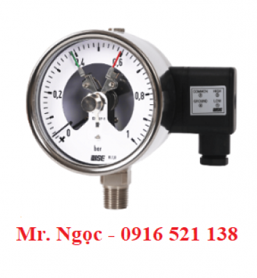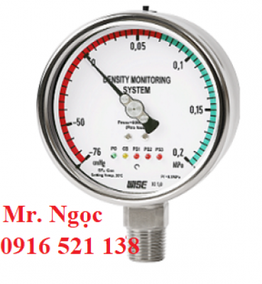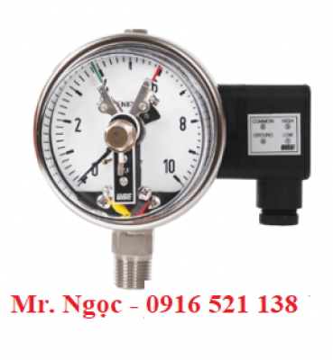 Đồng hồ áp suất tiếp điểm điện wise, đồng hồ đo áp suất Wise có tiếp điểm điện, đồng hồ áp suất 3 kim, đồng hồ áp suất tiếp điểm cao thấp, xuất xứ Wise- Hàn Quốc.